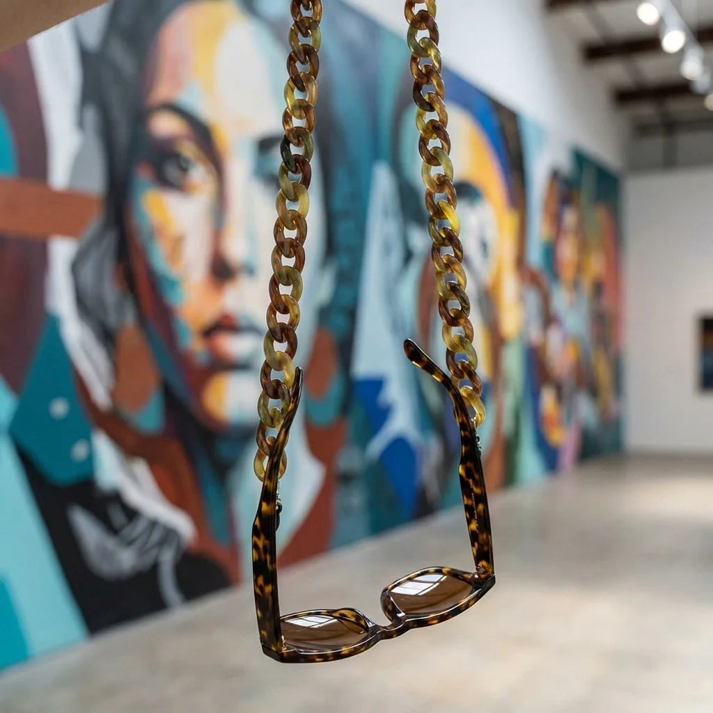Cadena de acetato reciclado para lentes carey fondo urbano artístico galería Bonoboss #color_carey