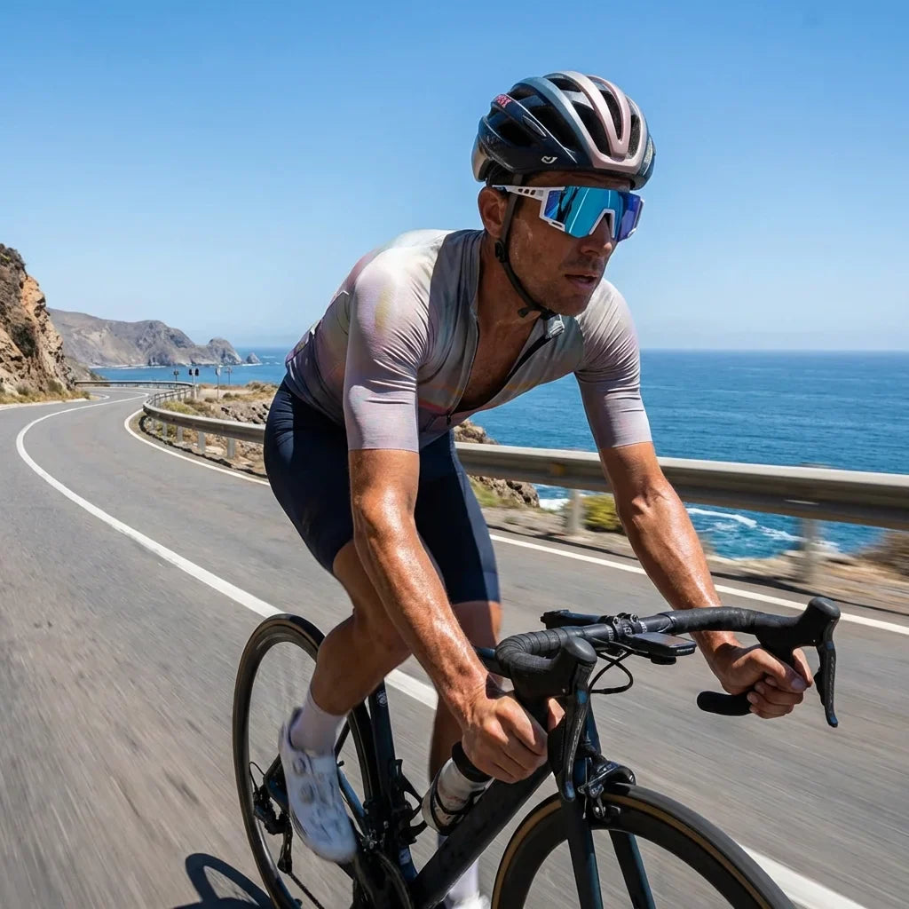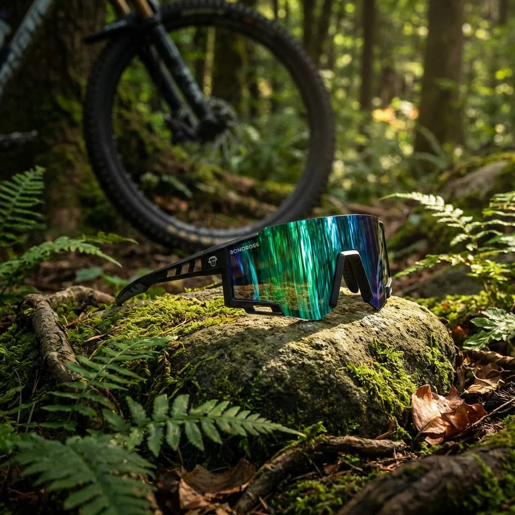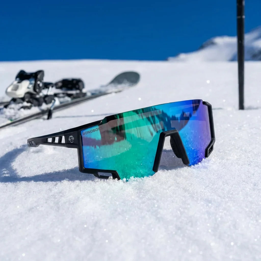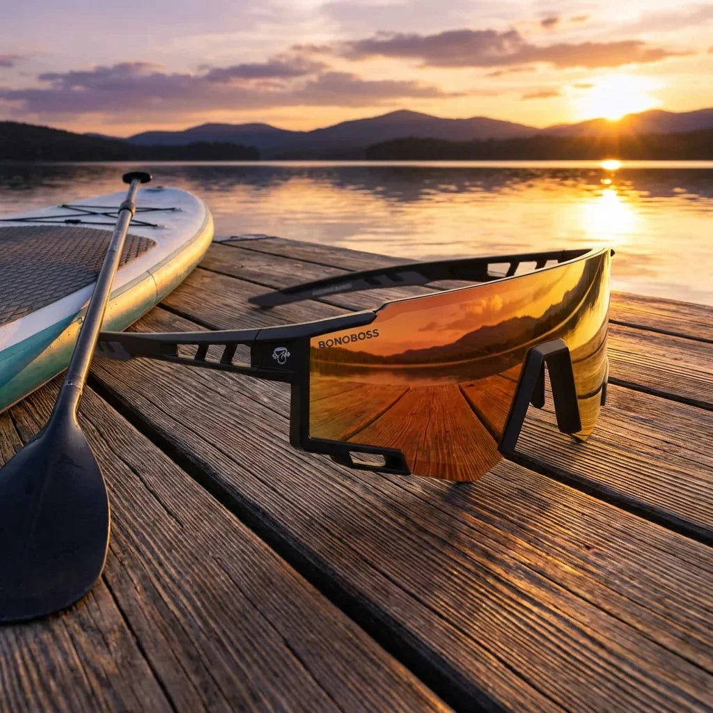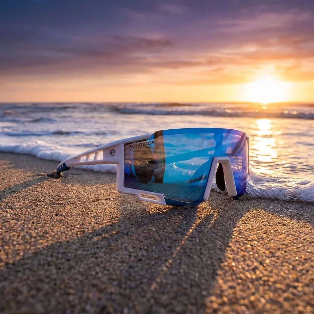 Estructura wrap-around que abraza tu cara sin apretar. Material ultra-liviano que te hace olvidar que los llevas puestos.
