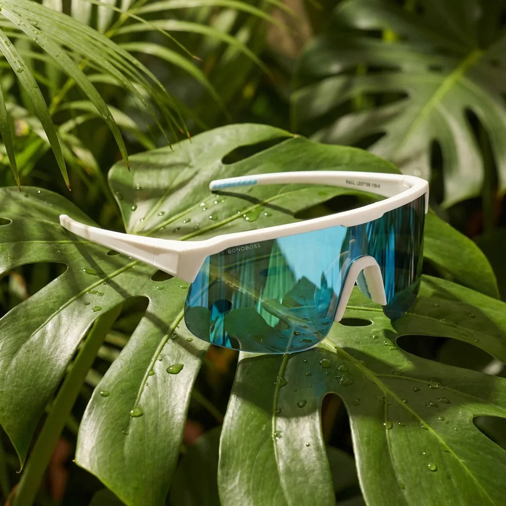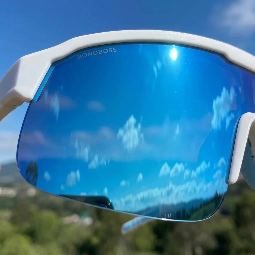 Estructura wrap-around que abraza tu cara sin apretar. Material ultra-liviano que te hace olvidar que los llevas puestos.