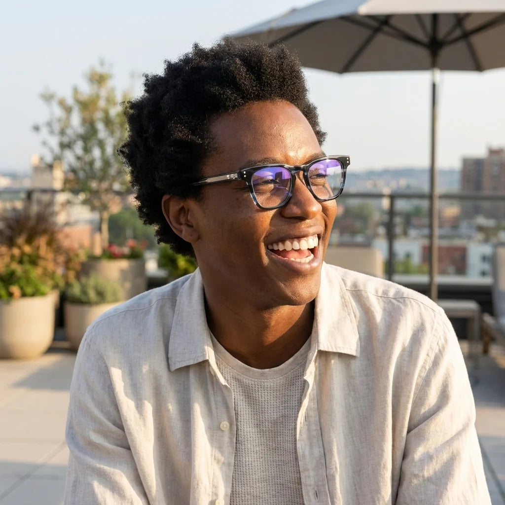 Nuestros marcos ópticos están fabricados en bio-acetato de celulosa, un material derivado de fibras naturales de algodón y madera. No es plástico de petróleo. Es un material premium, reparable y ajustable que envejece con gracia.