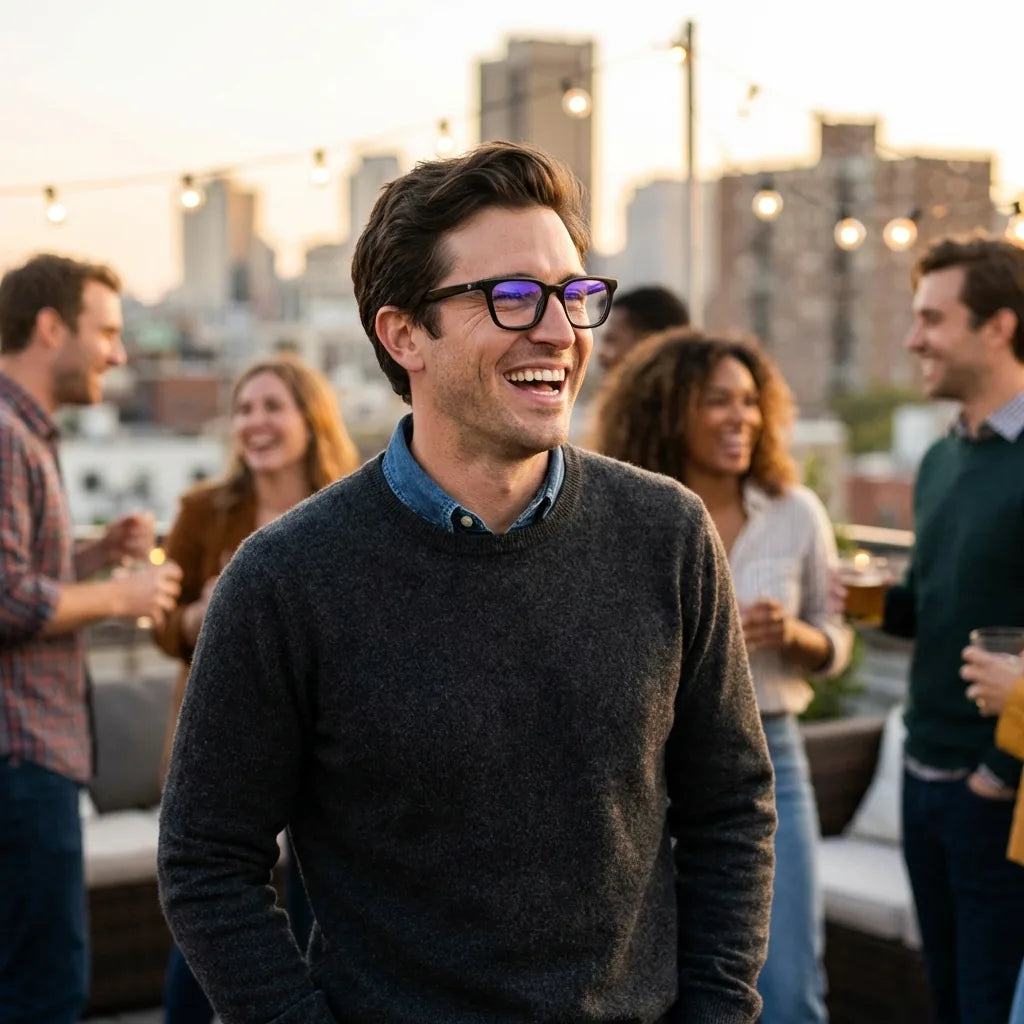 Lentes ópticos Oliver Negro modelo en contexto social urbano profesional Bonoboss #editorial_lifestyle4 #color_negro