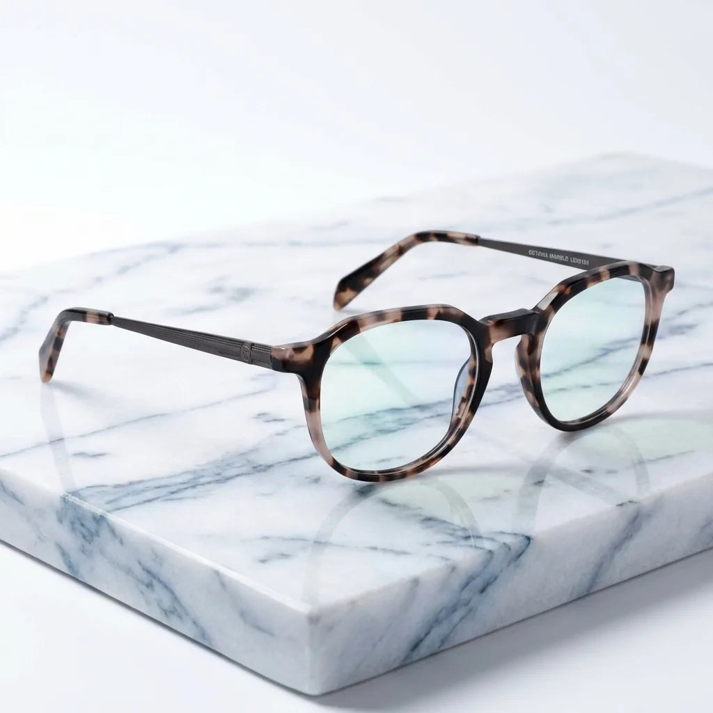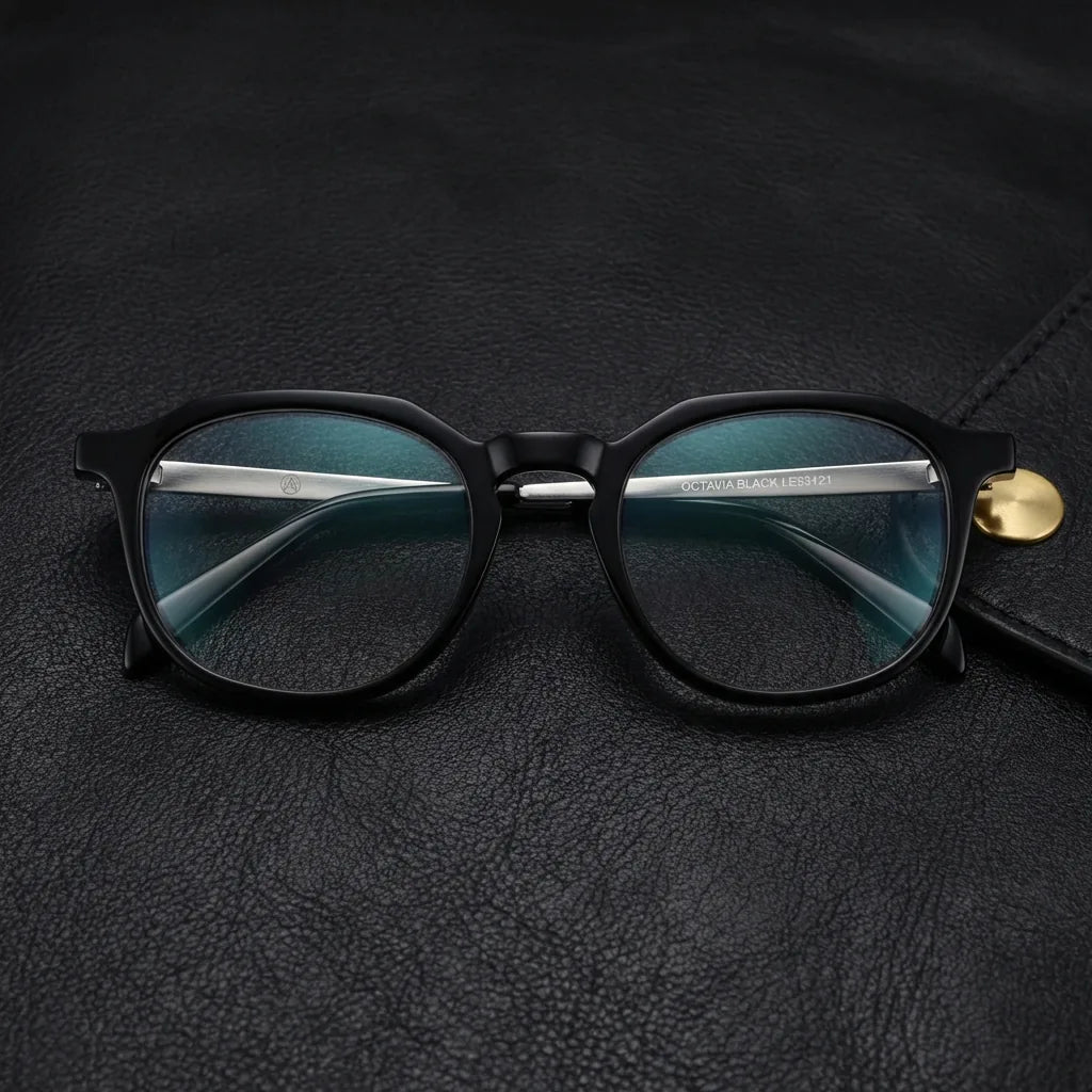 Nuestros marcos ópticos están fabricados en bio-acetato de celulosa, un material derivado de fibras naturales de algodón y madera. No es plástico de petróleo. Es un material premium, reparable y ajustable que envejece con gracia.