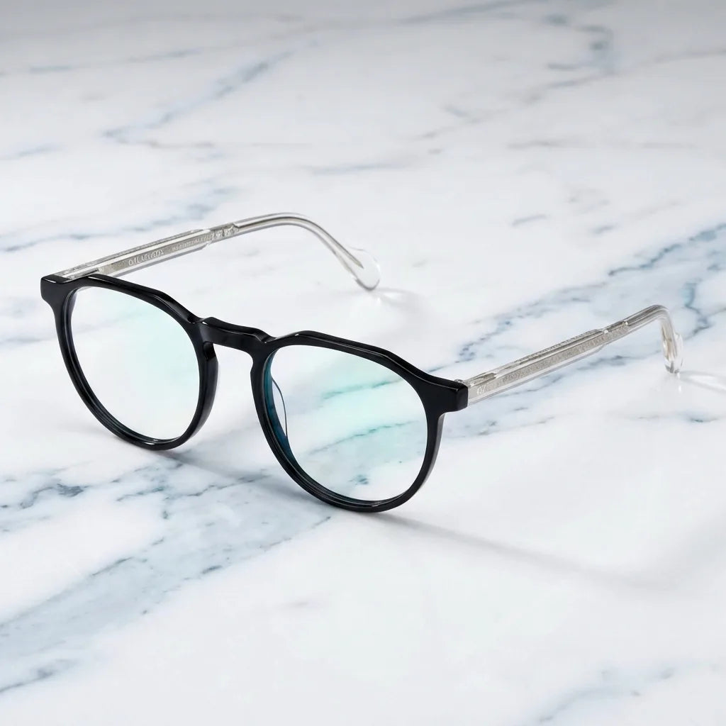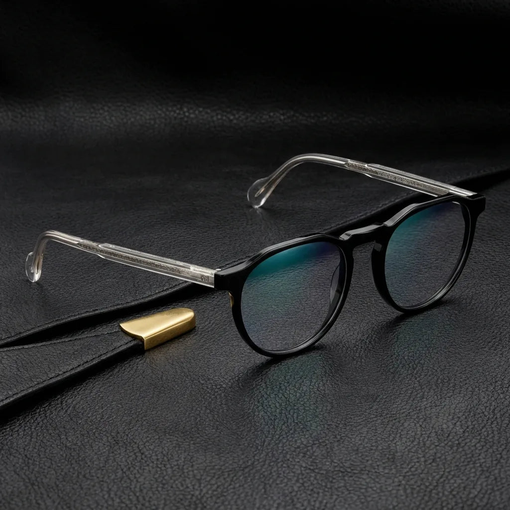Nuestros marcos ópticos están fabricados en bio-acetato de celulosa, un material derivado de fibras naturales de algodón y madera. No es plástico de petróleo. Es un material premium, reparable y ajustable que envejece con gracia.
