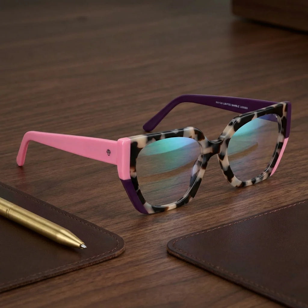 Nuestros marcos ópticos están fabricados en bio-acetato de celulosa, un material derivado de fibras naturales de algodón y madera. No es plástico de petróleo. Es un material premium, reparable y ajustable que envejece con gracia.