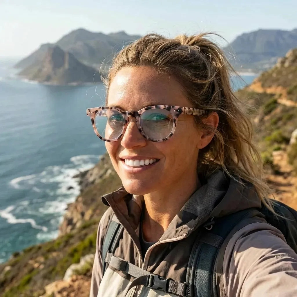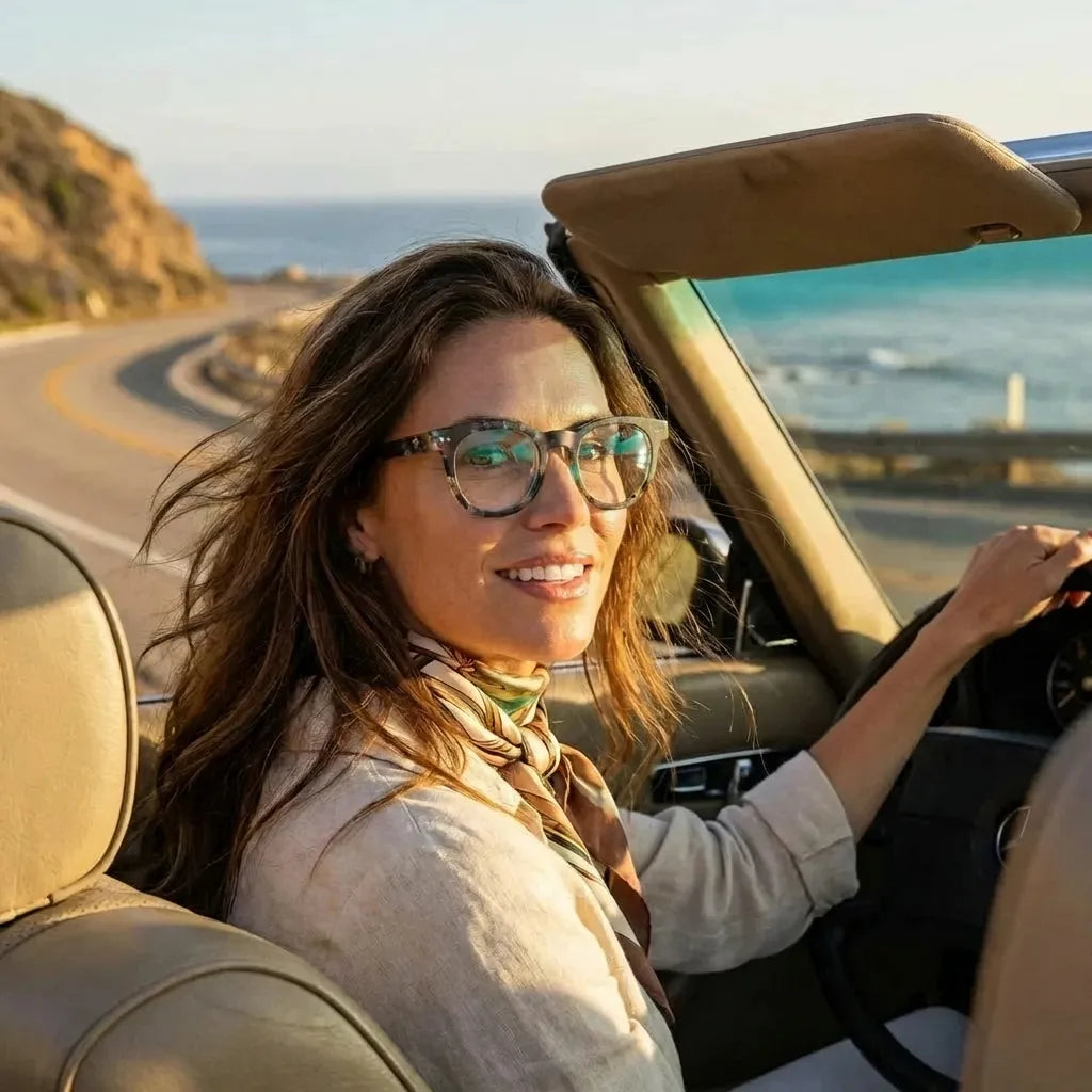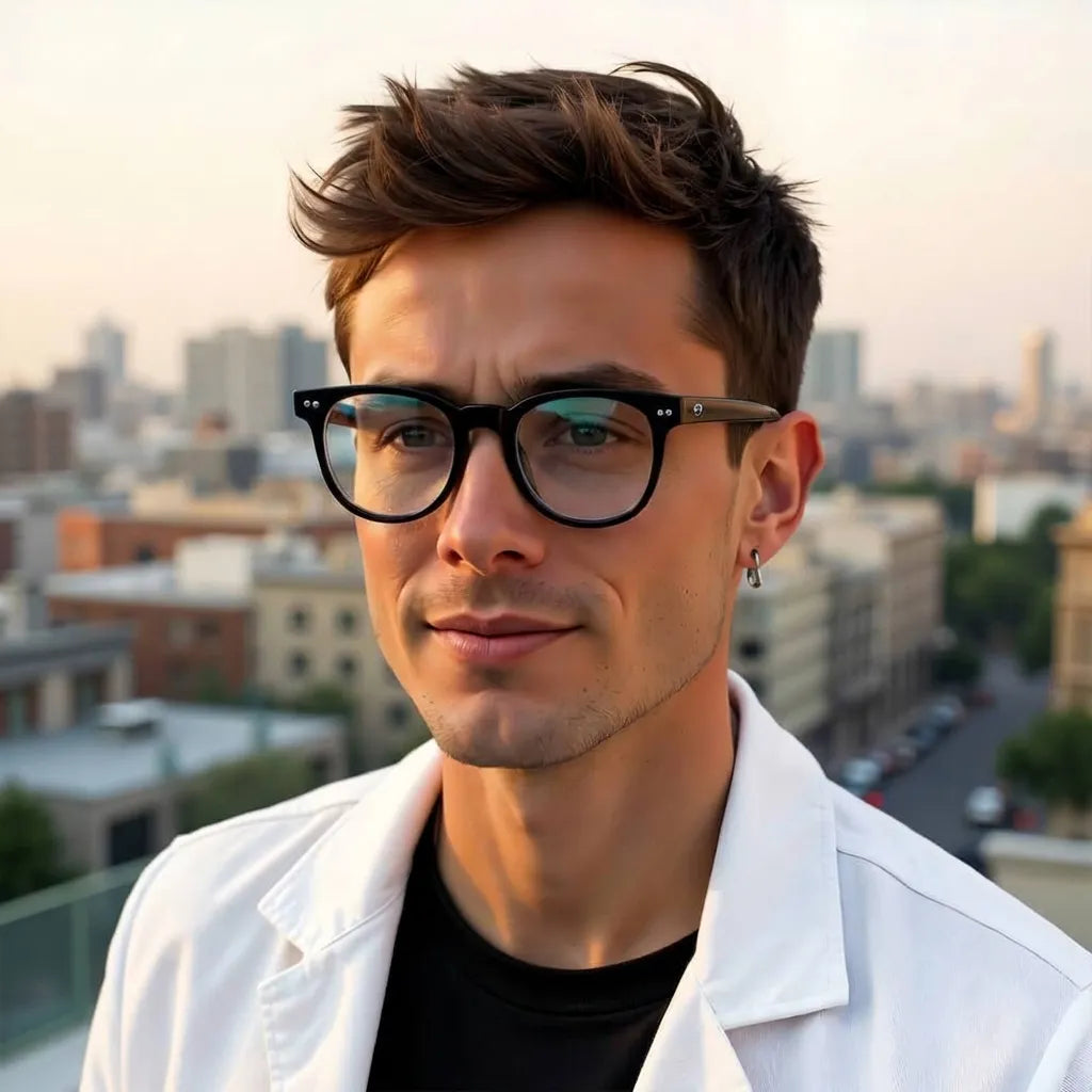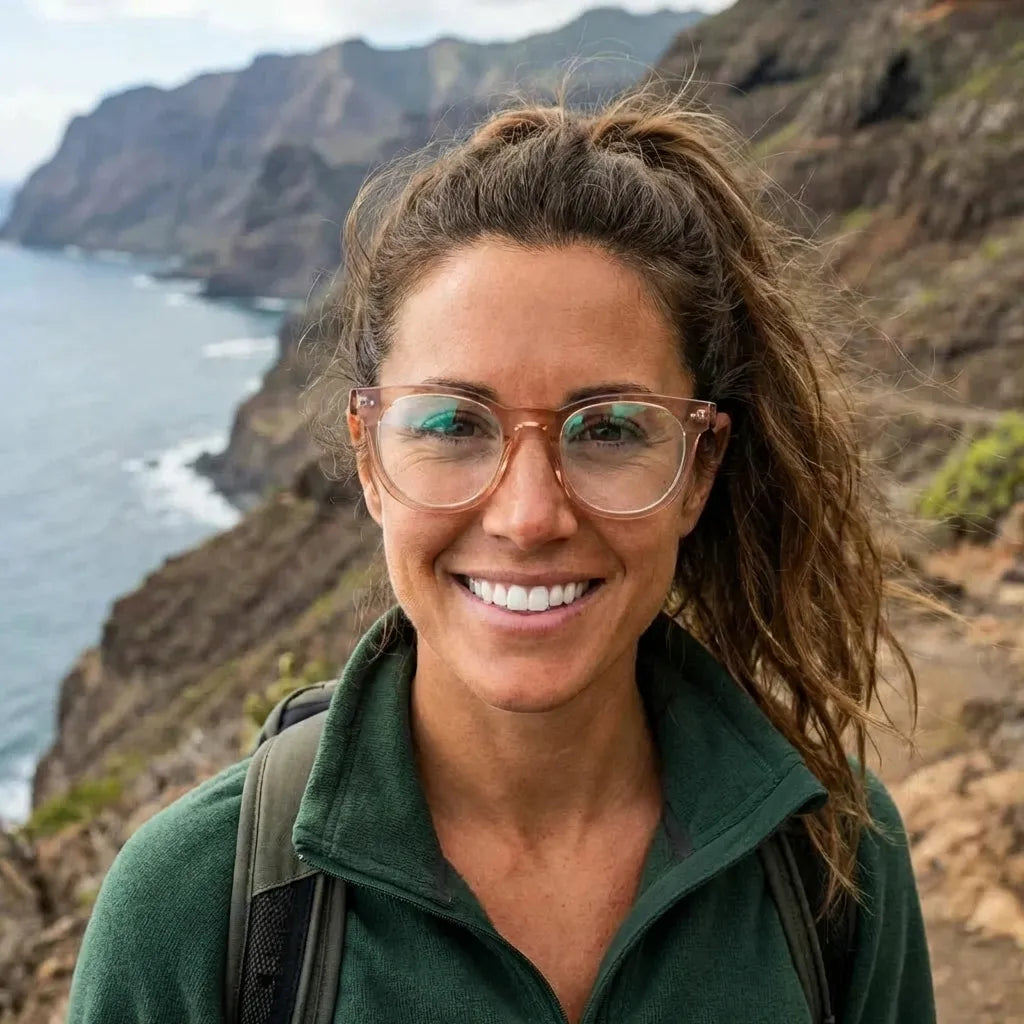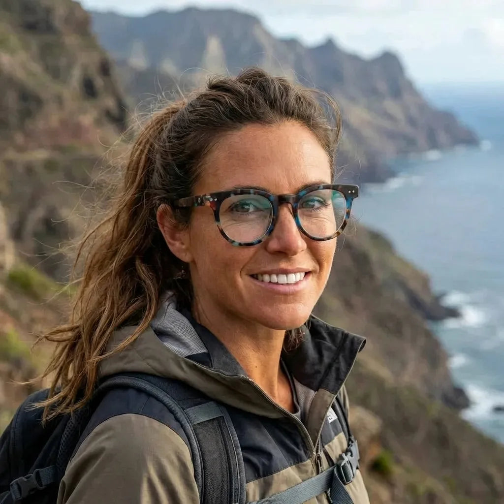 Nuestros marcos ópticos están fabricados en bio-acetato de celulosa, un material derivado de fibras naturales de algodón y madera. No es plástico de petróleo. Es un material premium, reparable y ajustable que envejece con gracia.