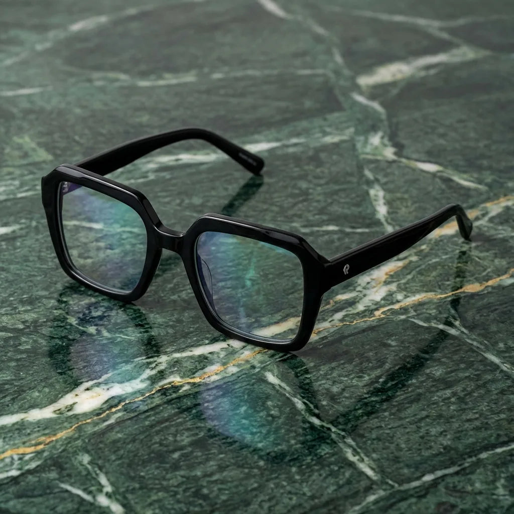 Nuestros marcos ópticos están fabricados en bio-acetato de celulosa, un material derivado de fibras naturales de algodón y madera. No es plástico de petróleo. Es un material premium, reparable y ajustable que envejece con gracia.