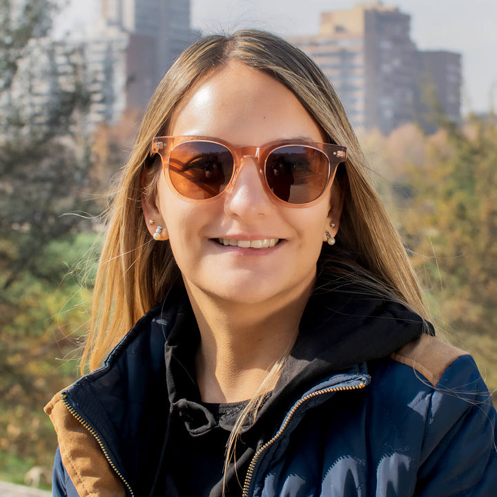 lentes anteojos de sol polarizados redondos damasco cristal color café para hombre y mujer #color_lightsalmon